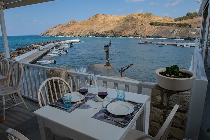 Η εξαιρετικής ποιότητας, παραδοσιακή ελληνική κουζίνα περιλαμβάνει καθημερινά αλιεύματα από τους ντόπιους ψαράδες μαγειρεμένα σε ανοιχτή σχάρα συνοδευόμενα από ελληνικό μεζέ.